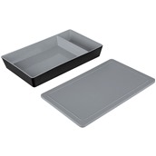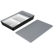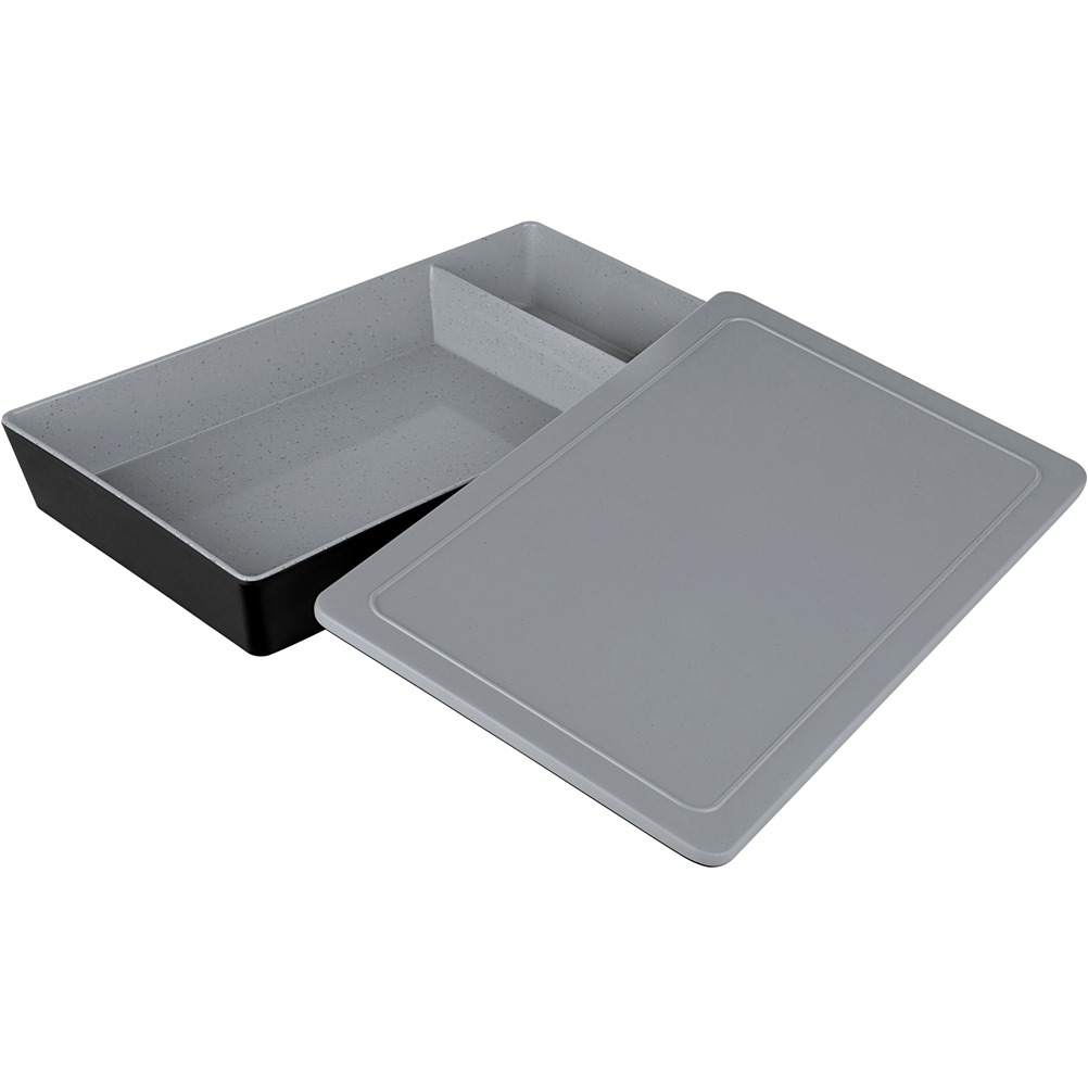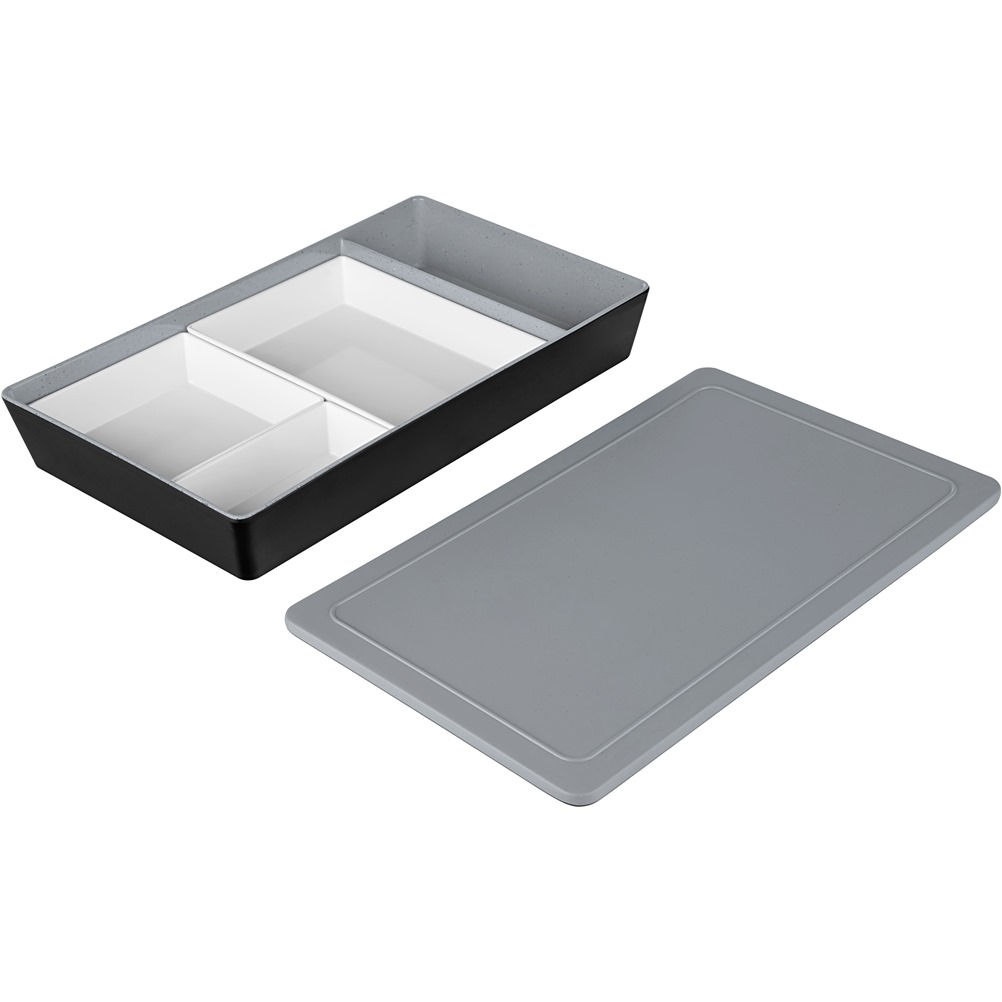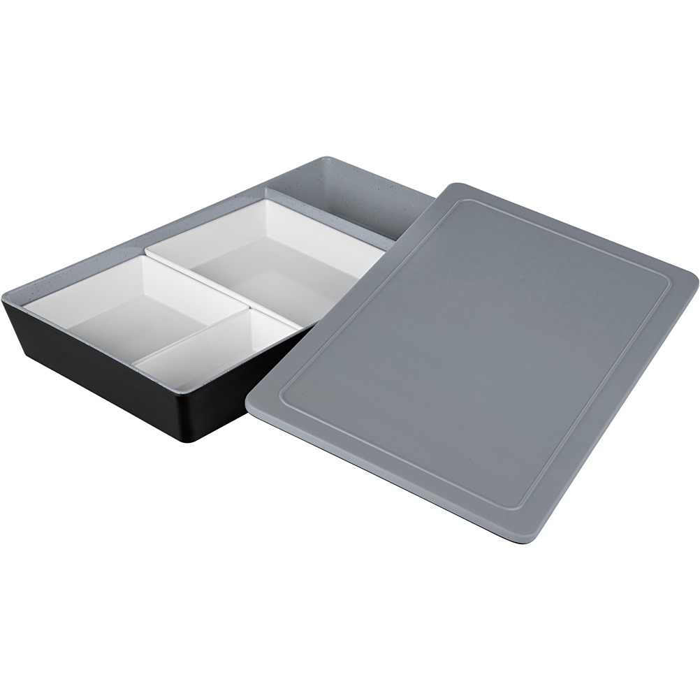 Κουτί Σερβιρίσματος μελαμίνης γκρι με καπάκι & 3 σκεύη λευκά, 32.5x25xΥ8cm