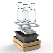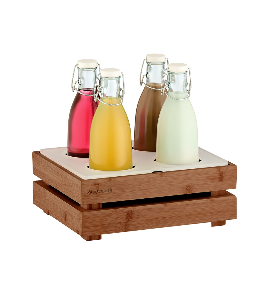 Ψυχόμενη Βάση μπουκαλιών απο Ξύλο Ακακίας και Plexi Frost Επιφάνεια, με 4 Φιάλες 1lt, σε Φυσική Απόχρωση, 32,5x26,5xΥ36cm, Crate, Garibald