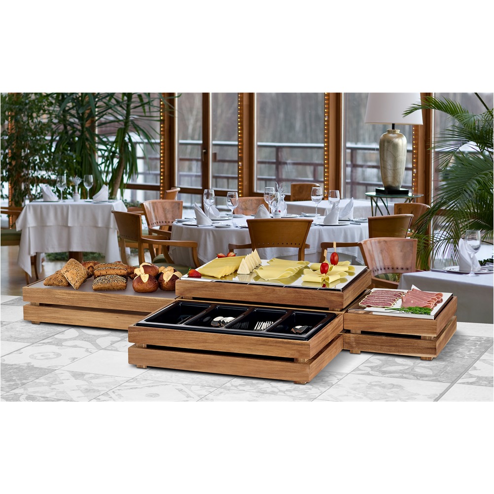 Η ποικιλία των προϊόντων της Garibaldi, κατασκευασμένων από πλαστικά υλικά και ανοξείδωτο χάλυβα σε διάφορα φινιρίσματα, προσφέρει λύσεις σε επαγγελματικές ανάγκες παρουσίασης τροφίμων σε ξενοδοχεία και εστιατόρια.