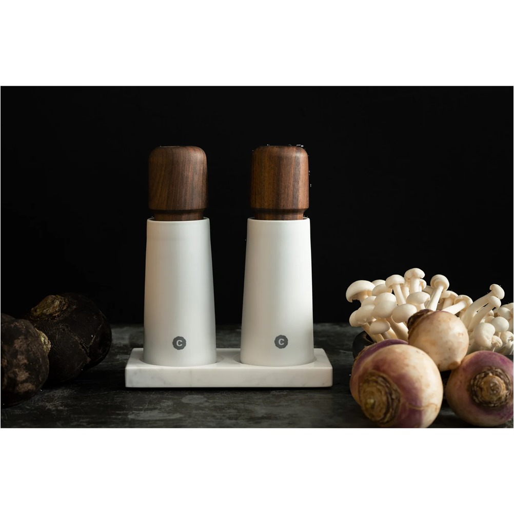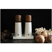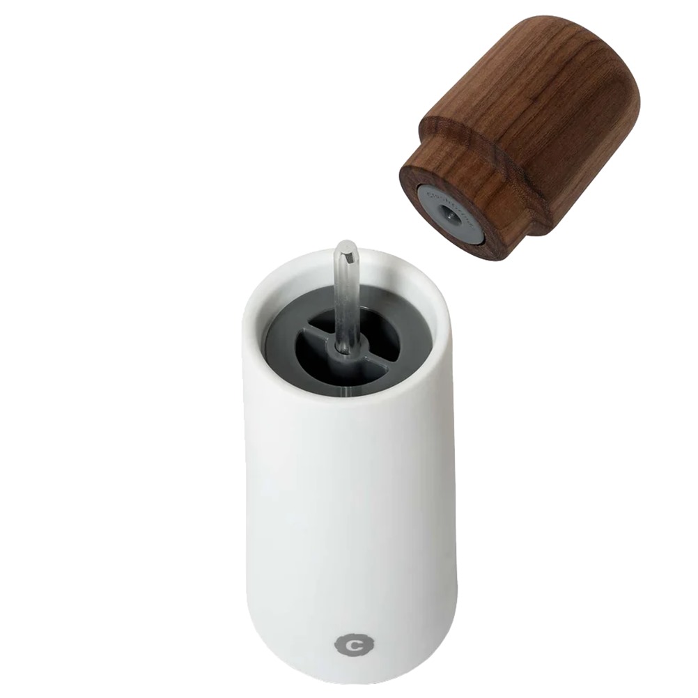 Μύλος Αλατιού/Πιπεριού/Μπαχαρικών Πορσελάνης, Καπάκι Καρυδιάς, Λευκός, 17cm, σειρά STOCKHOLM, CrushGrind Δανίας