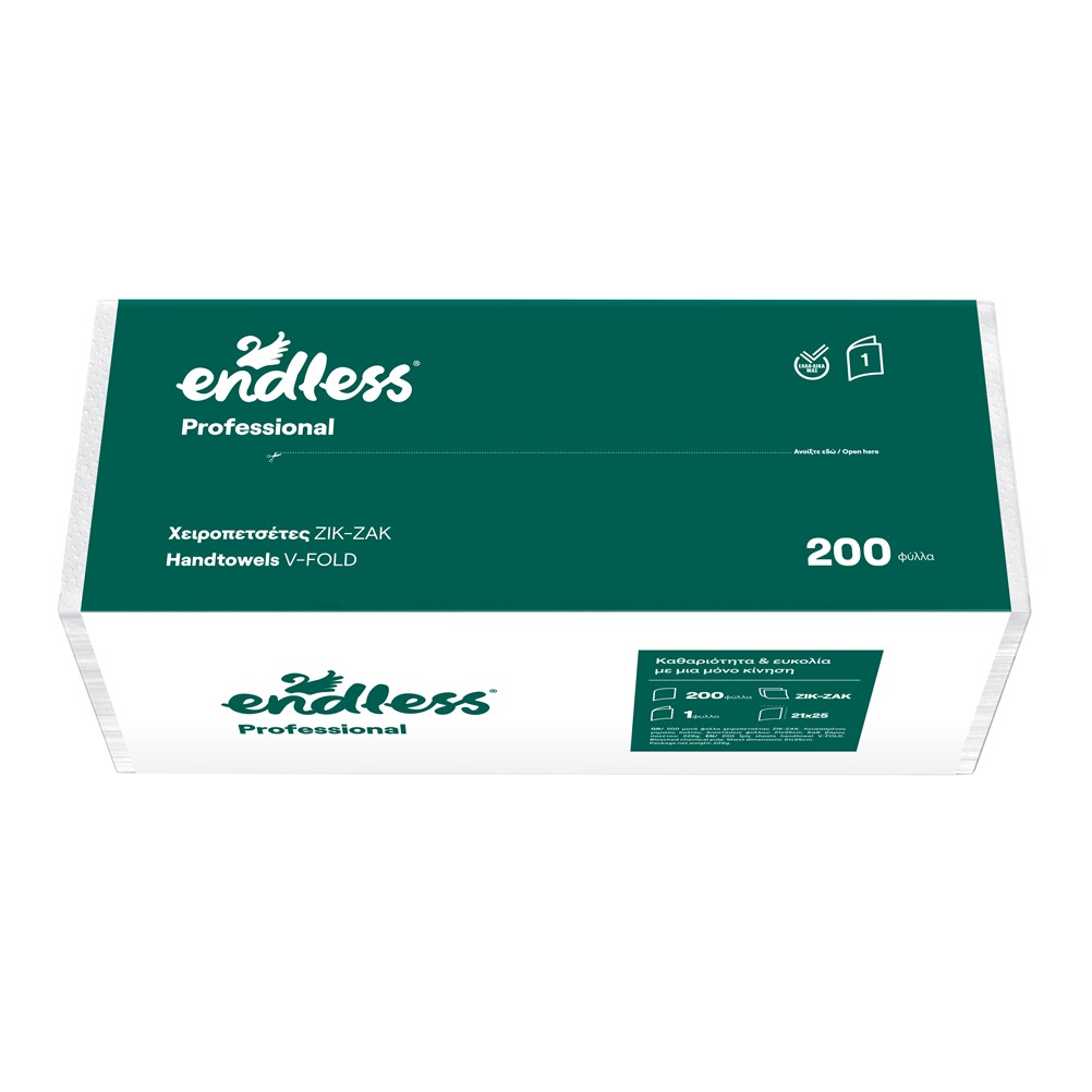 Χειροπετσέτες Ζικ Ζακ Επαγγελματικές, 200 τεμαχίων, 1φυλλες, 229 gr, ENDLESS