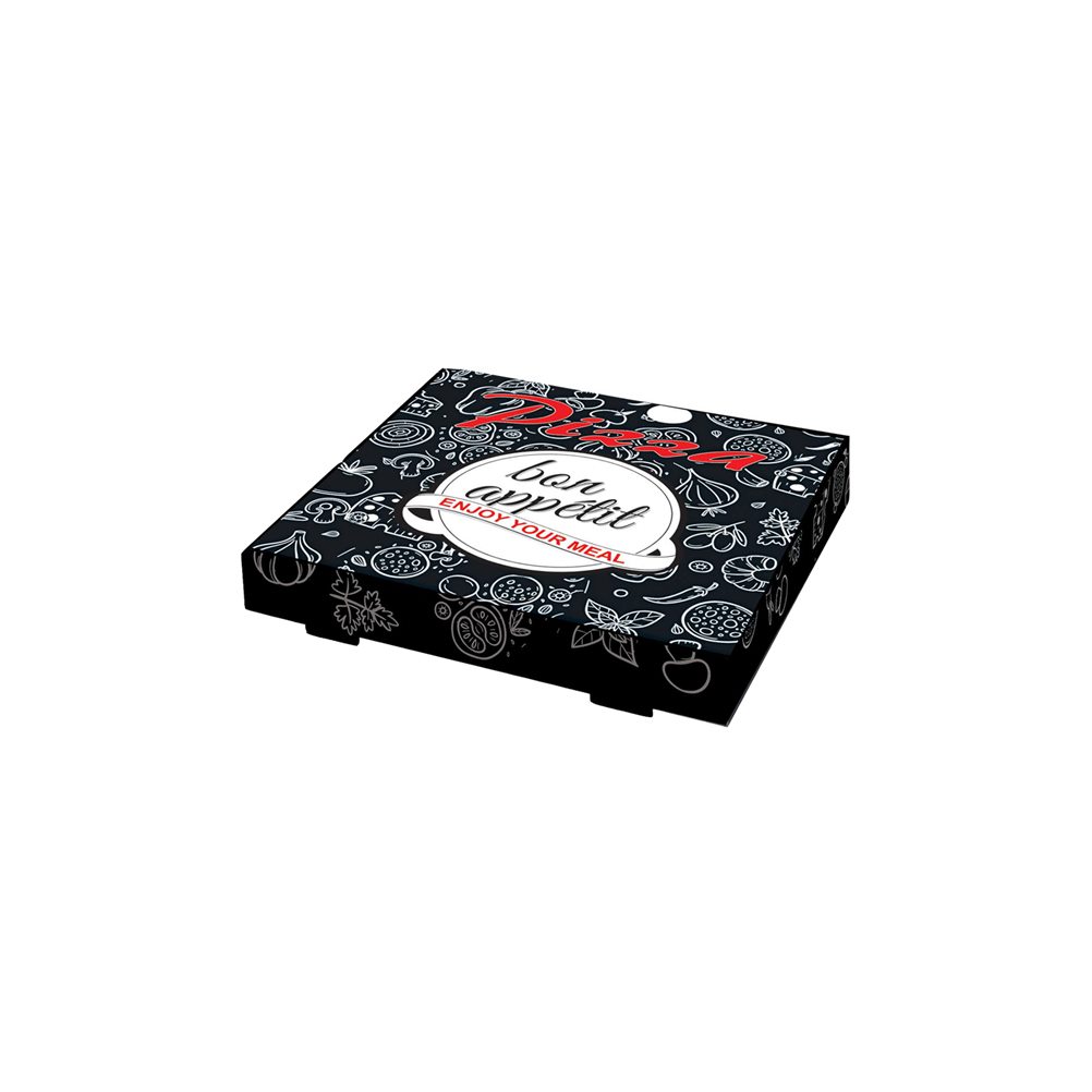 Κουτί Πίτσας Μικροβέλε, σχέδιο Bon Appetit Μαύρο, 28x28x4.2cm