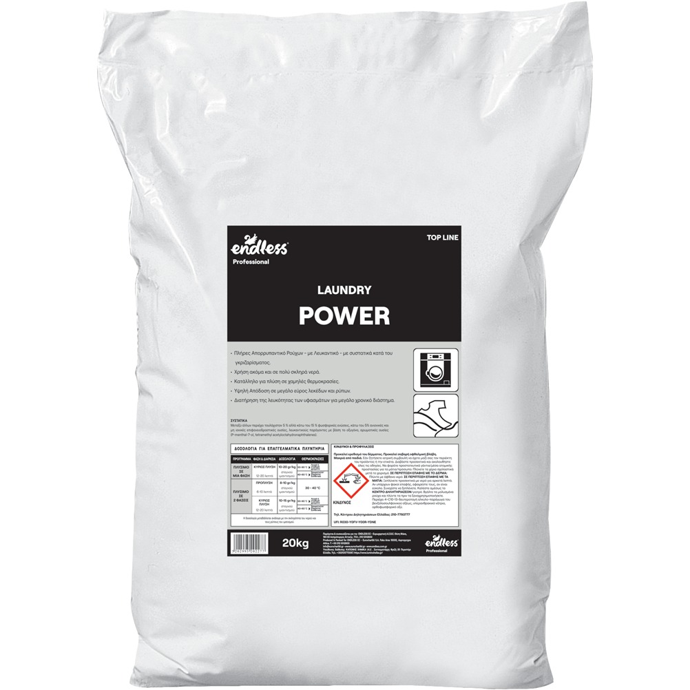Απoρρυπαντικό Πλυντηρίου σε Σκόνη, Πλήρες με Λευκαντικό, Power, 20kg, Endless