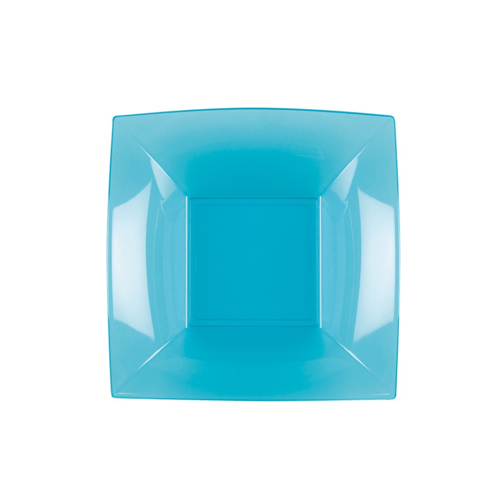 Πιάτο σούπας πλαστικό PS τετράγωνο 18x18cm διάφανο τιρκουάζ πολυτελείας.