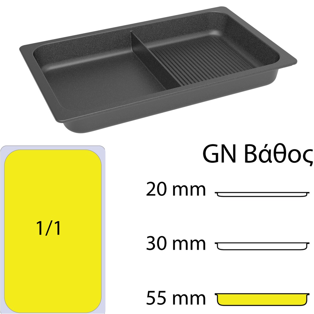 Δίσκος/Ταψί GN1/1, απο Χυτό Αλουμίνιο, Μισό Λείο/Μισό Grill, Αντικολλητικό, 53x32.5xΥ5.5cm, AMT