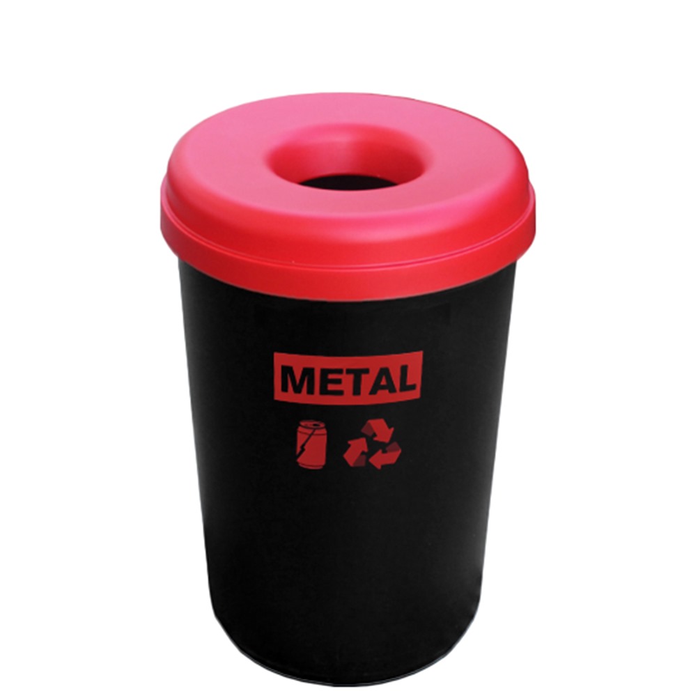 Κάδος ανακύκλωσης Πλαστικός μαύρος, 60lt, με ετικέτα Metal & κόκκινο καπάκι