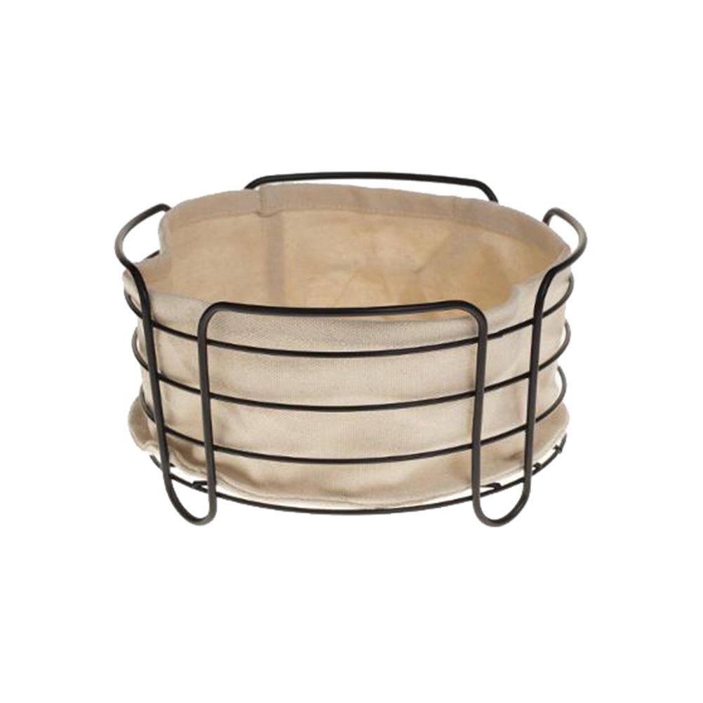 Υφασμάτινη ψωμιέρα κρεμ, με μεταλλική μαύρη βάση, φ21xΥ11.5cm