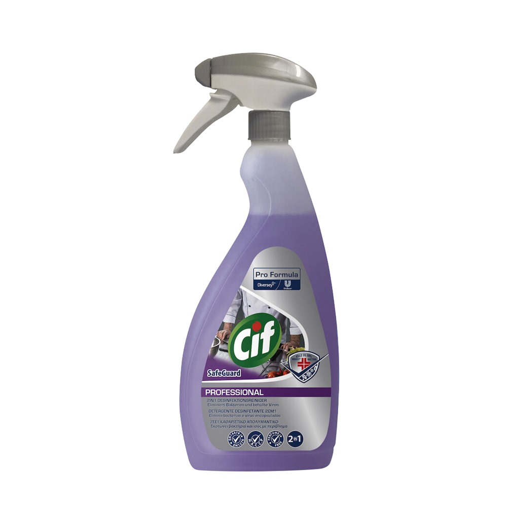 Το Cif SafeGuard Professional 2σε1 Καθαριστικό Απολυμαντικό είναι ένα συνδυαστικό προϊόν που καθαρίζει και απολυμαίνει σε ένα βήμα όλες τις σκληρές επιφάνειες, συμπεριλαμβανομένων των χώρων τροφίμων.