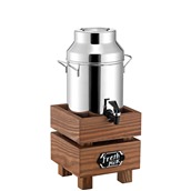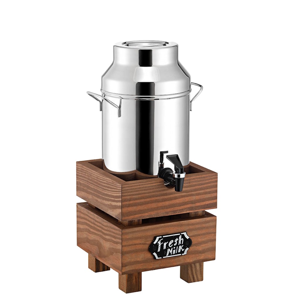 Διανεμητής Γάλακτος Inox 5lt, βάση απο μασίφ ξύλο πεύκου, χρώμα καρυδιά, σειρα Crate.