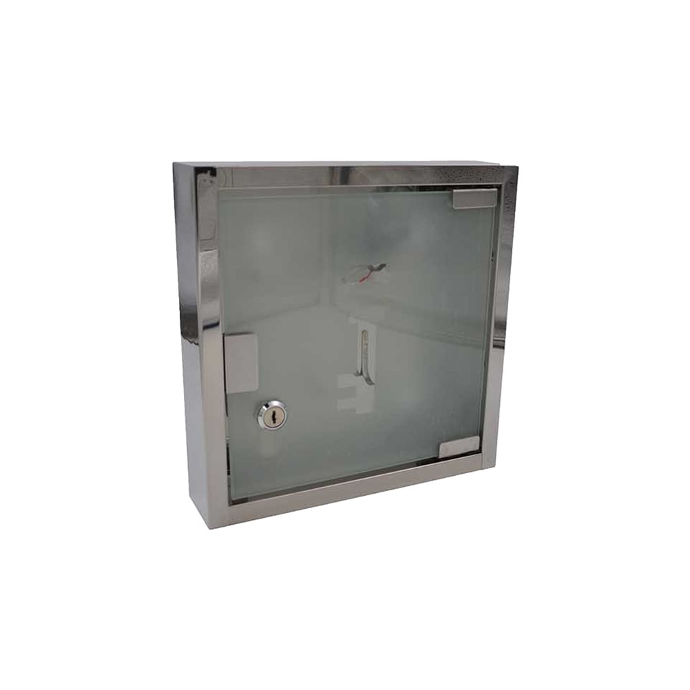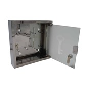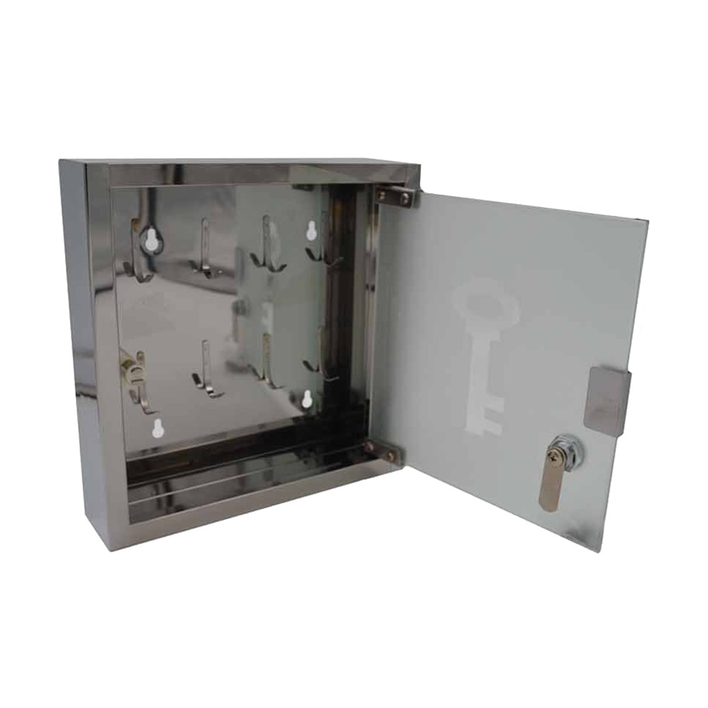 Kλειδοθήκη INOX έχει γυάλινο πορτάκι με μαγνήτη και 8 θέσεις κλειδιών, 25x25x6cm