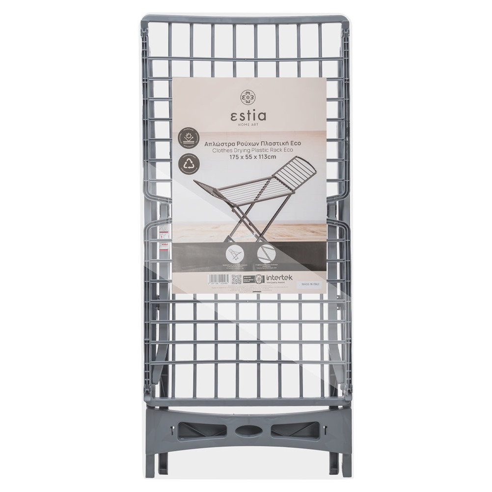Απλώστρα Δαπέδου, Πλαστική ECO, με UV προστασία, ράβδοι 20 μέτρων, Γκρι, BIOCICLO, 175x55xΥ113cm, ESTIA
