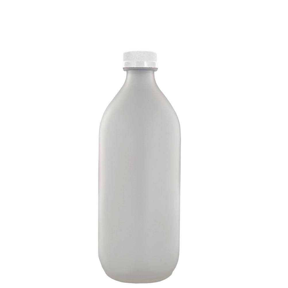Φιάλη γυάλινη QUADRA 1000ml σατινέ (πάγου), φ9.3x24.9cm, με λευκό καπάκι