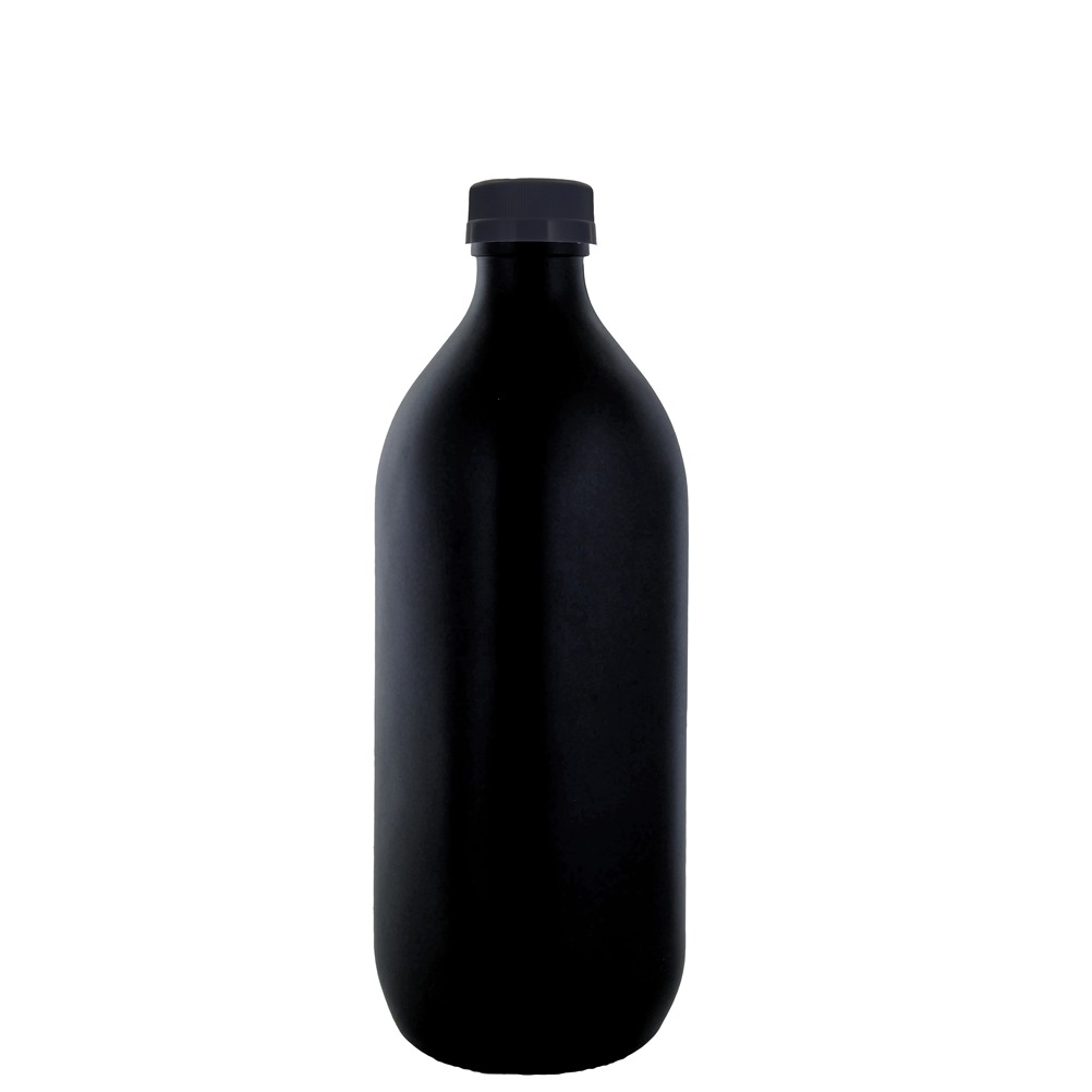 Φιάλη γυάλινη QUADRA 1000ml μαύρη, φ9.3x24.9cm, με μαύρο καπάκι