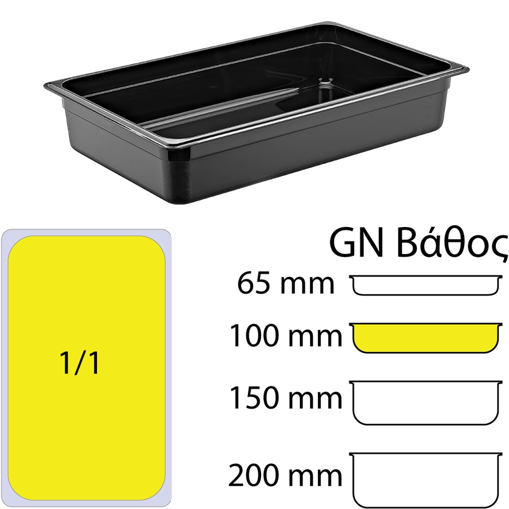 Δοχείο Τροφίμων PC, Μαύρο, χωρίς καπάκι, GN1/1 (325 x 530mm) - ύψος 100mm