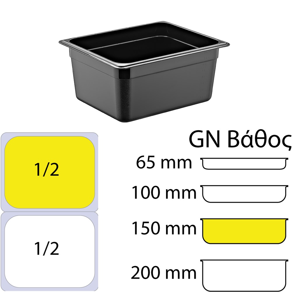Δοχείο Τροφίμων PC, Μαύρο, χωρίς καπάκι, GN1/2 (265 x 325mm) - ύψος 150mm