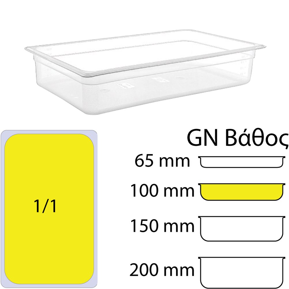 Δοχείο Τροφίμων PP, Διάφανο, χωρίς καπάκι, GN1/1 (325 x 530mm) - ύψος 100mm
