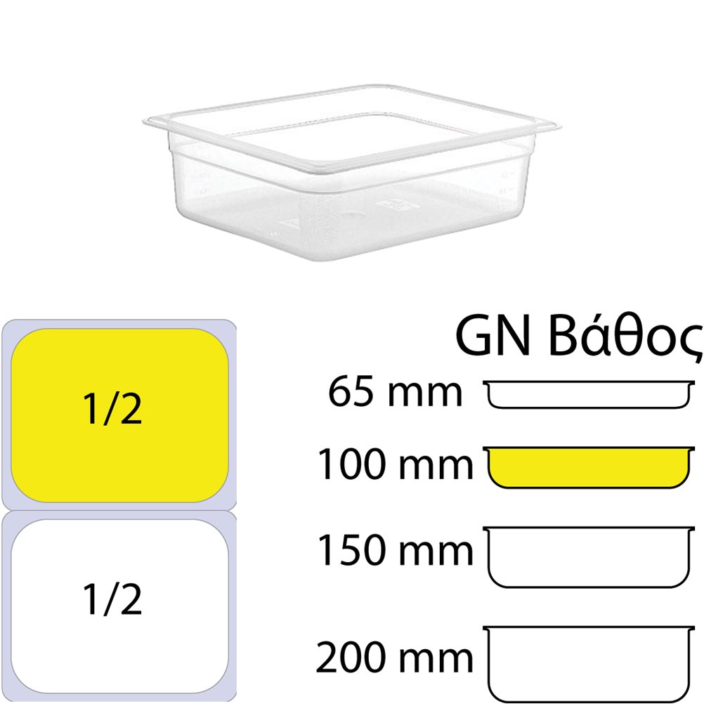 Δοχείο Τροφίμων PP, Διάφανο, χωρίς καπάκι, GN1/2 (265 x 325mm) - ύψος 100mm