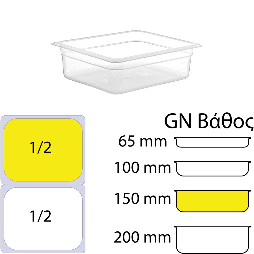 Δοχείο Τροφίμων PP, Διάφανο, χωρίς καπάκι, GN1/2 (265 x 325mm) - ύψος 150mm