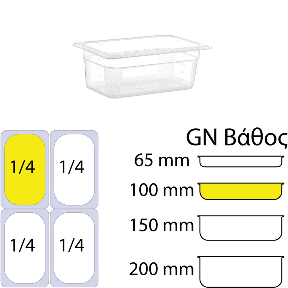 Δοχείο Τροφίμων PP, Διάφανο, χωρίς καπάκι, GN1/4 (162 x 265mm) - ύψος 100mm