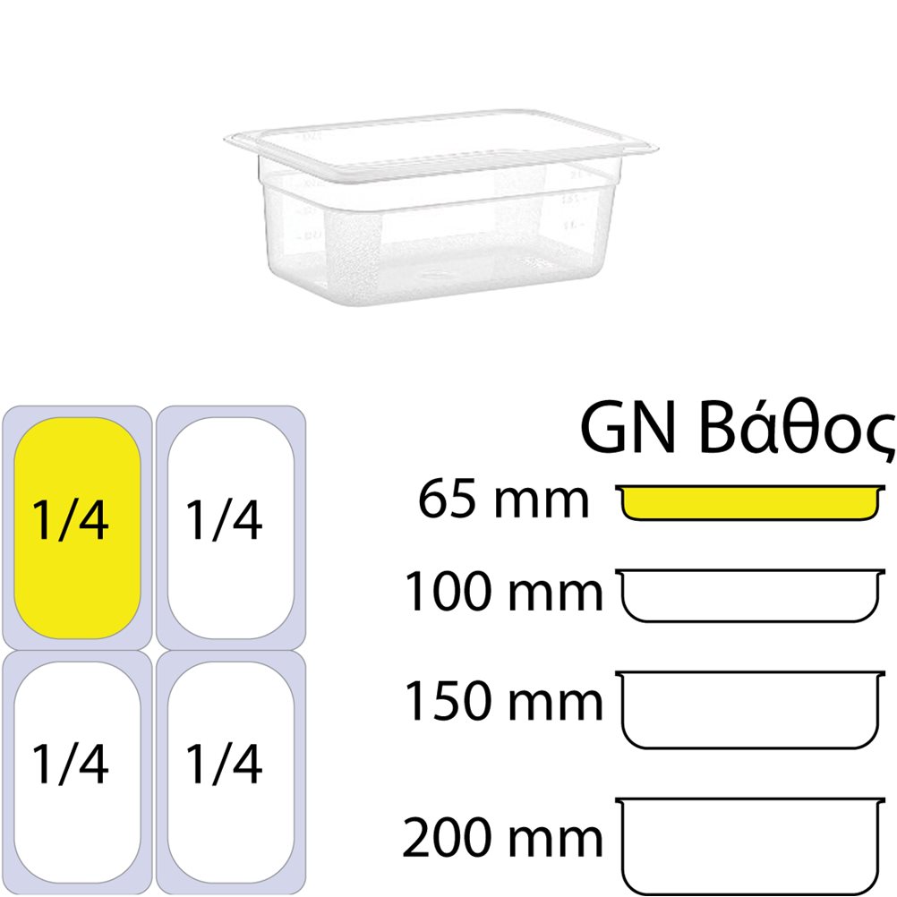 Δοχείο Τροφίμων PP, Διάφανο, χωρίς καπάκι, GN1/4 (162 x 265mm) - ύψος 65mm