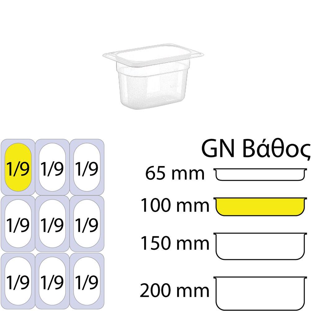 Δοχείο Τροφίμων PP, Διάφανο, χωρίς καπάκι, GN1/9 (108 x 176mm) - ύψος 100mm