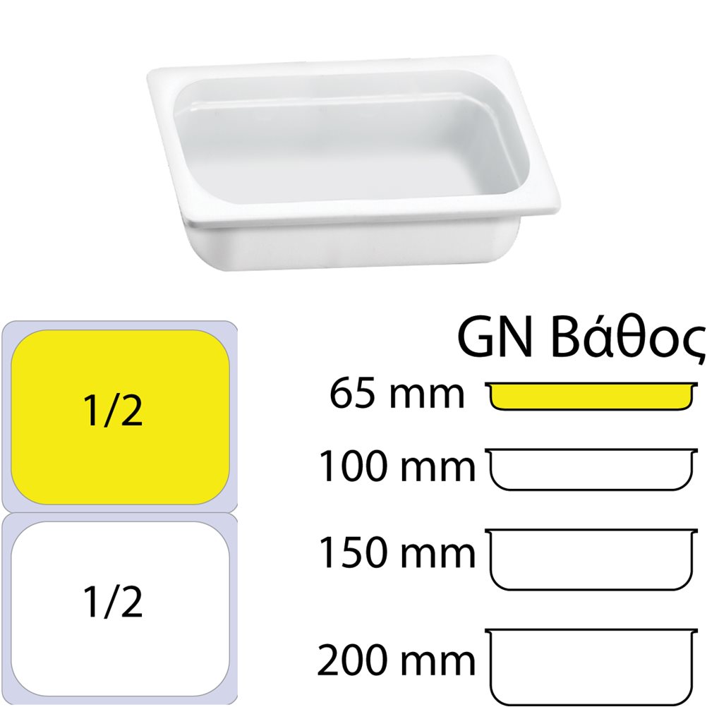 Δοχείο Γαστρονομίας στοιβαζόμενο μελαμίνης GN1/2 – 32.5x26x6.5cm, λευκό