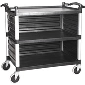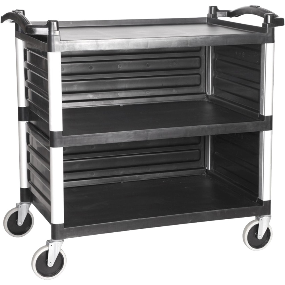 Τρόλεϊ/Καρότσι Αλουμινίου, με 3 πλαστικά ράφια, κλειστή πλάτη, Μαύρο, 100x49.5xΥ92cm