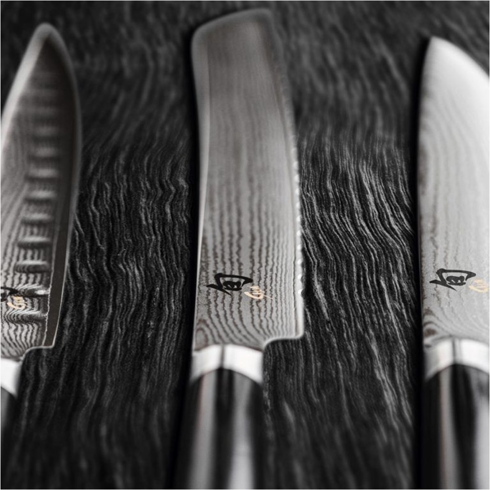Η σειρά Shun Classic ενώνει αιώνες παλιάς Ιαπωνικής σιδηρουργίας Σαμουράι με την σημερινή μοντέρνα και τεχνικά εκλεπτυσμένη διαδικασία παραγωγής. Το αποτέλεσμα είναι μία υψηλής ποιότητας γκάμα Δαμασκηνών μαχαιριών, που κατασκευάζονται με προσοχή έως την παραμικρή λεπτομέρεια και σχεδιάζονται πάντα με στόχο την διατήρηση της αιχμηρότητας. Γι αυτό το λόγο, τα μαχαίρια είναι ιδανικά για επαγγελματική χρήση. Οι λάμες της Shun Classic είναι ιδιαιτέρως εντυπωσιακές και εμφανισιακά χάρη στο διακριτικό ημιγυαλιστερό μοτίβο που προκύπτει από την σύνθεση των 32 στρώσεων Δαμασκηνού ατσαλιού. Αυτός ο συνδυασμός με την κομψή, στενή, μαύρη λαβή από pakkawood, έχει ως αποτέλεσμα ένα καλαίσθητο σχέδιο, βάζοντας σε προτεραιότητα τόσο την ποιότητα όσο και την λειτουργικότητα.