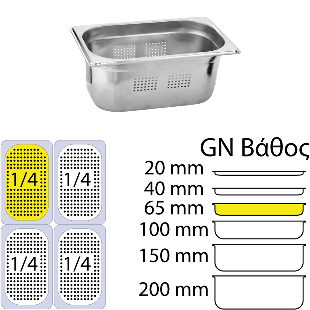 Δοχείο γαστρονομίας Διάτρητο INOX 18/10, GN1/4 (26.5x16.2cm)-6.5cm, KAPP