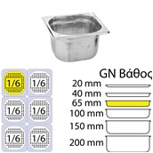 Δοχείο γαστρονομίας Διάτρητο INOX 18/10, GN1/6 (17.6x16.2cm)-6,5cm, KAPP