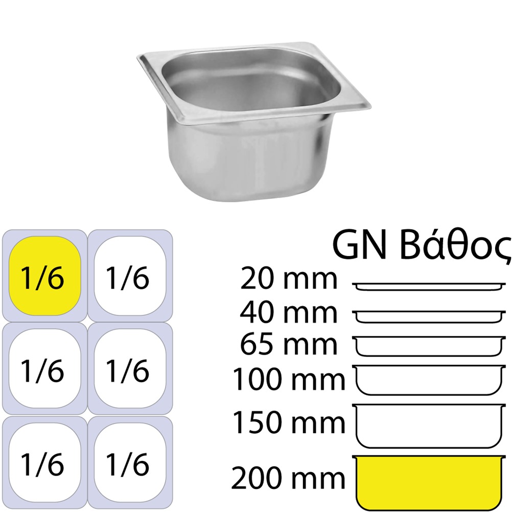 Δοχείο γαστρονομίας Inox 18/10, GN1/6 (17.6x16.2cm)-20cm, KAPP