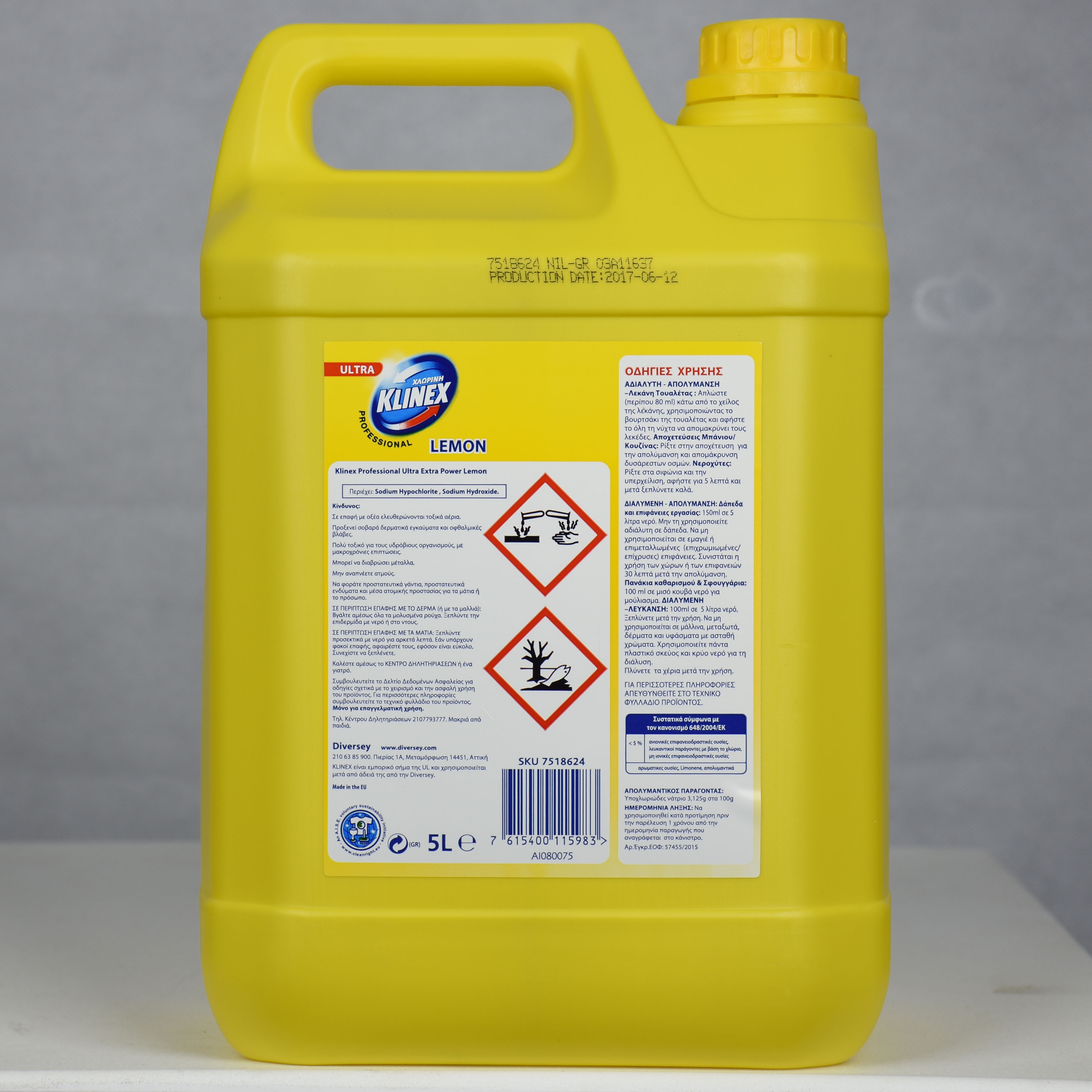 Παχύρρευστη χλωρίνη 5lt ultra, extra power, καθαρισμός/απολύμανση, λεμόνι, Klinex