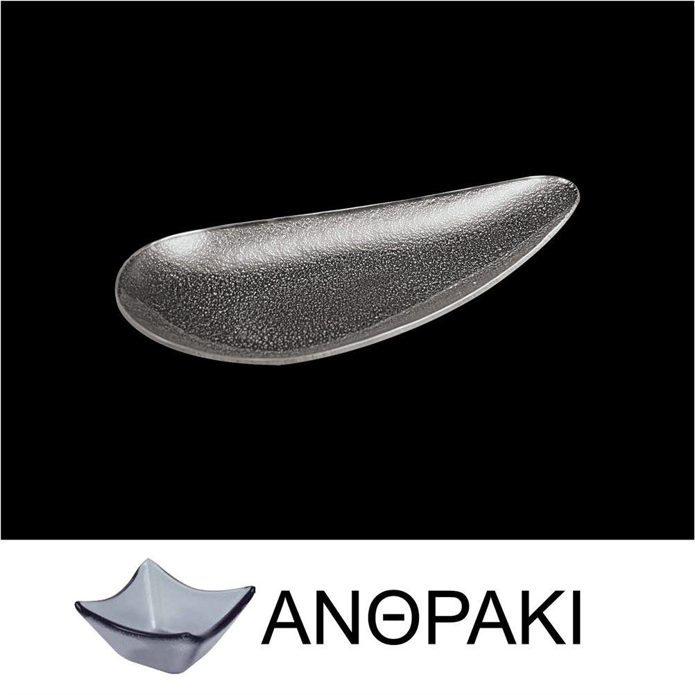 Πιατέλα από Χυτό Γυαλί, Δάκρυ, Ανθρακί, 4mm, 14x25cm