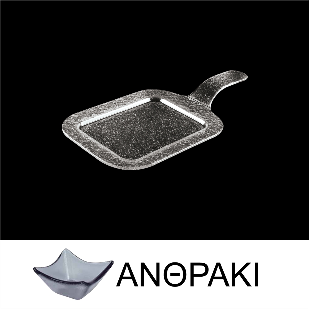 Πιατέλα Σερβιρίσματος από Χυτό Γυαλί με Χερούλι, Ανθρακί, 4mm, 19x36cm