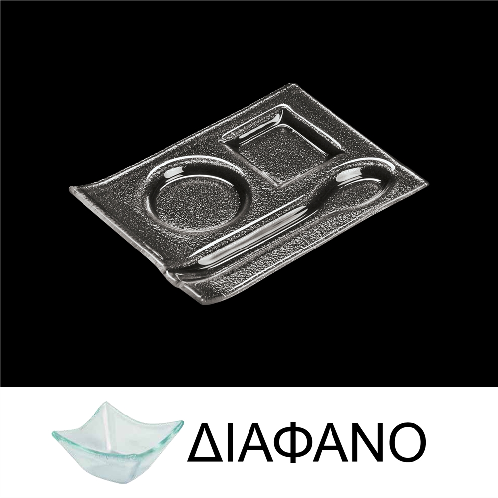 Δίσκος Καφέ από Χυτό Γυαλι, με 3 εσοχές, Διαφανές, 4mm, 14x19cm,