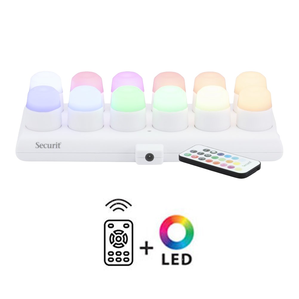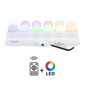 ΣΕΤ 12 κεριά/ρεσώ LED (πολύχρωμα RGB), επαναφορτιζόμενα, με τηλεχειρηστήριο, SECURIT