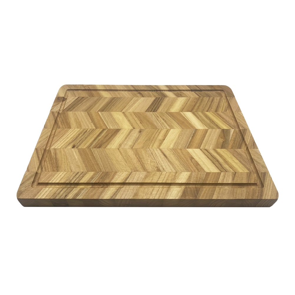 Πλάκα κοπής ψαροκόκκαλο, από ξύλο τικ, 36x26xΥ2.5cm, με λούκι, Lukanda