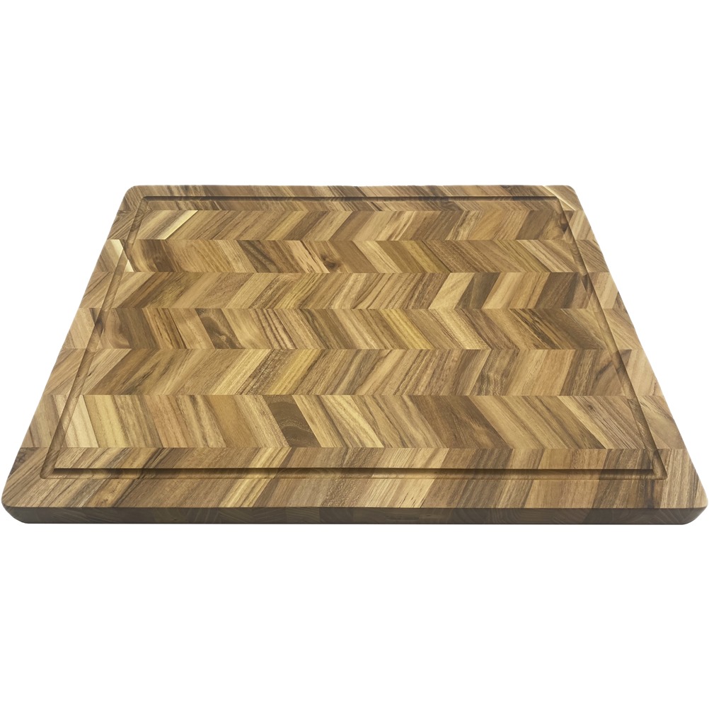 Πλάκα κοπής ψαροκόκκαλο, από ξύλο τικ, 46x36xΥ2.5cm, με λούκι, Lukanda