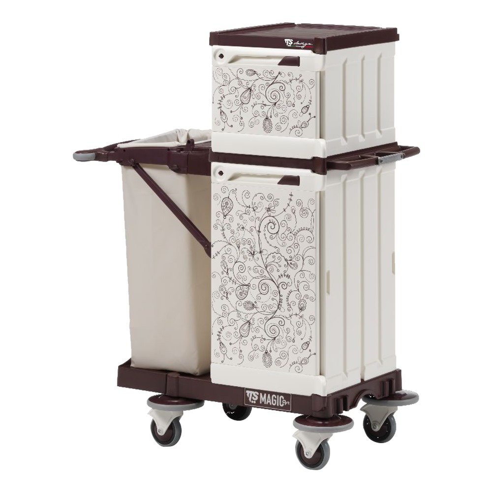 Καρότσι Καμαριέρας Πλαστικό, για 1 σακο(δεν περιλαμβάνεται), 2 ορόφων, με 2 πόρτες, TTS Cleaning