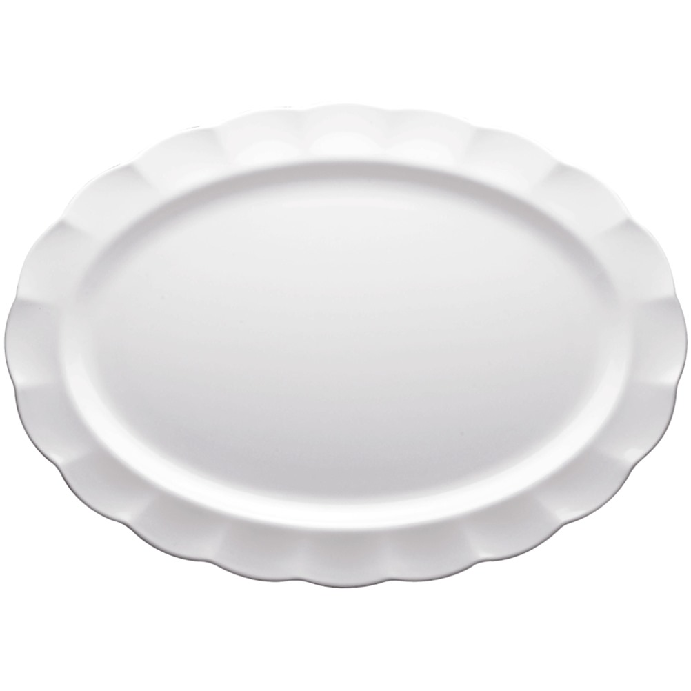 Πιατέλα Μελαμίνης, Οβάλ, με σχέδιο στο Rim, Λευκή, 55.9x40.3xY3.8cm, Morleos