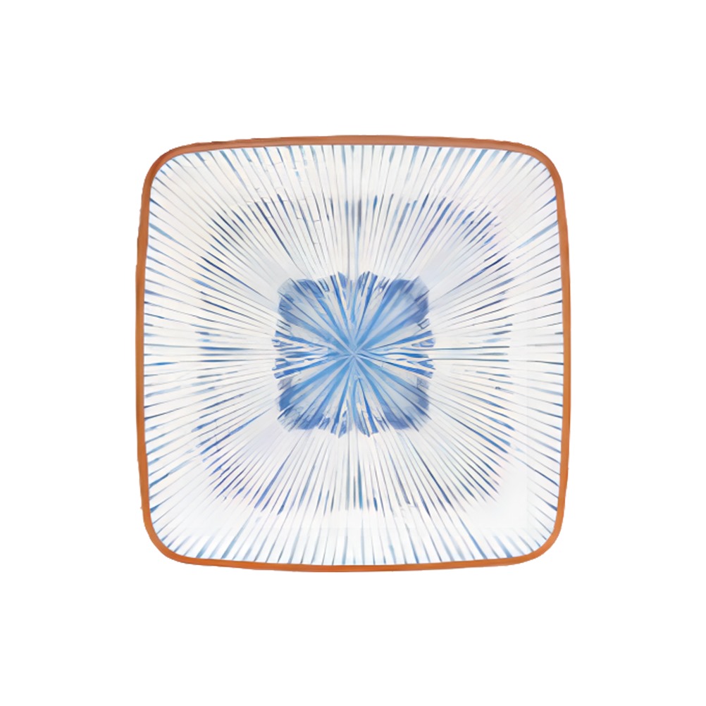 Πιάτο Μελαμίνης, Τετράγωνο, Λευκό με Μπλε σχεδιο και Μπεζ τελείωμα, 26.6x26.6cm, Morleos