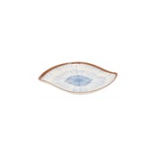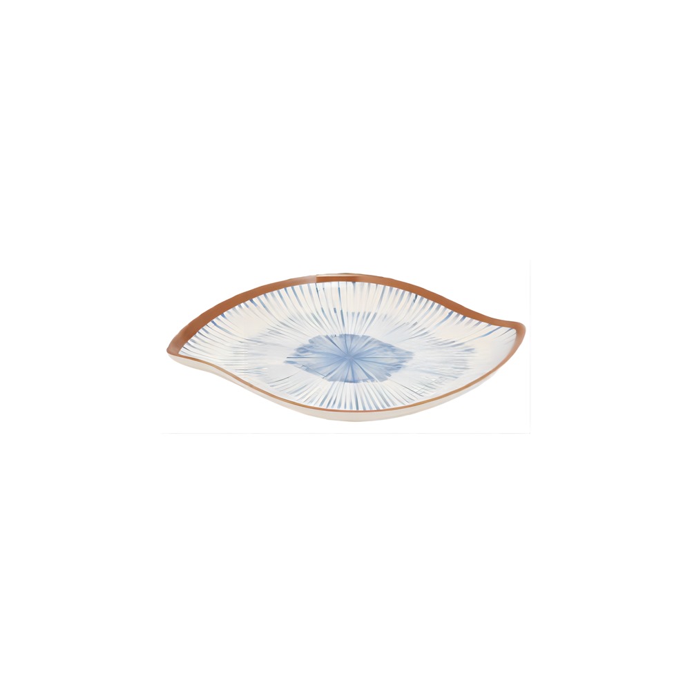 Πιάτο Μελαμίνης, Ρηχό, σε σχήμα φύλλου, Λευκό με Μπλε σχεδιο και Μπεζ τελείωμα, 22.8x20.5cm, Morleos