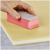 - Μόλις αφαιρεθεί η επίμονη βρωμιά με την πλευρά τραχύτητας του ΞΥΣΤΗ, η επιφάνεια της σανίδας κοπής μπορεί να γίνει λεία χρησιμοποιώντας την πλευρά φινιρίσματος. Κατά τη διάρκεια αυτής της διαδικασίας, τα φτερά ή οι δυσάρεστες οσμές μπορούν επίσης να αφαιρεθούν εντελώς και έτσι να αποφευχθεί η μόλυνση από ξένα σωματίδια.