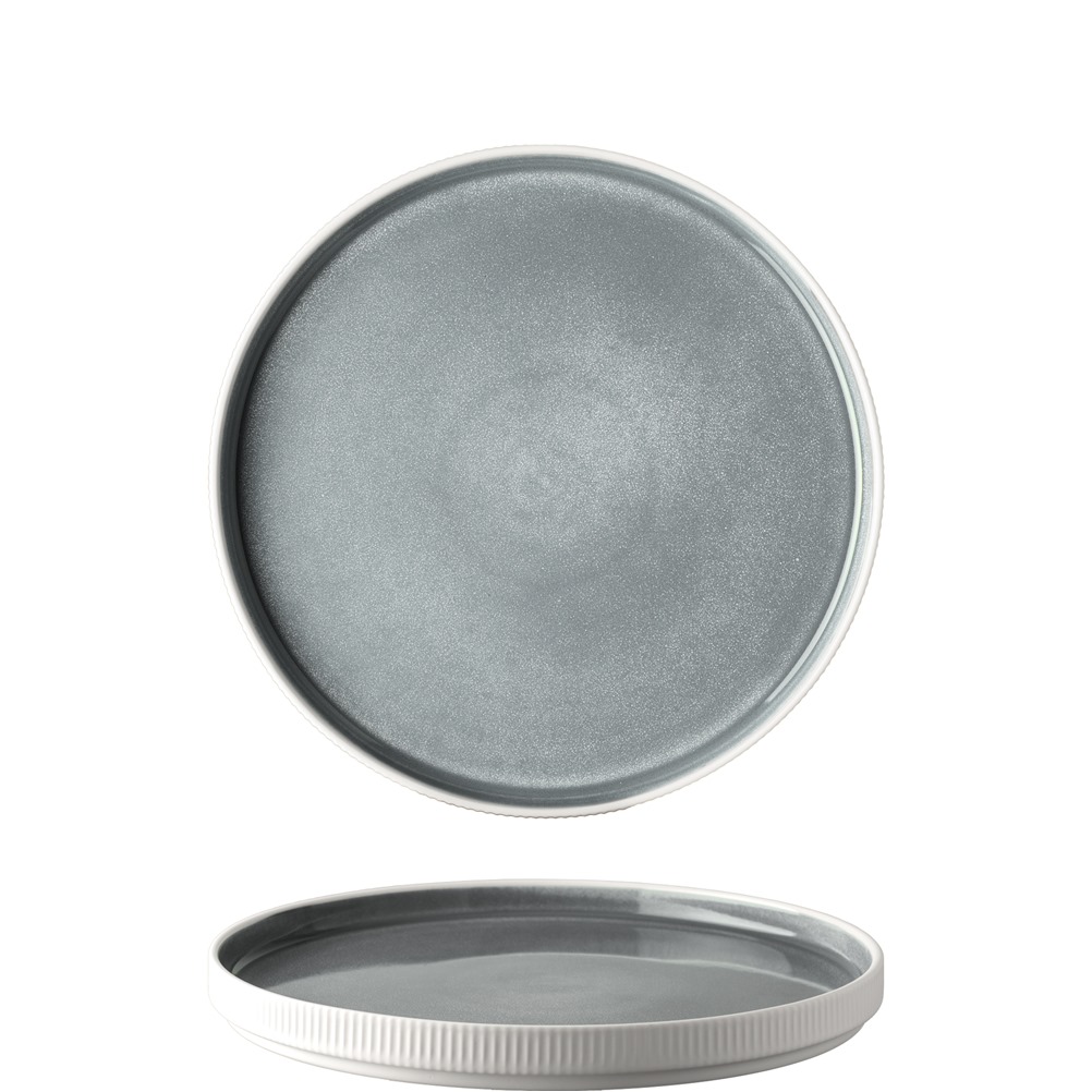 Πιάτο πορσελάνης ρηχό με κάθετα πλαϊνά, φ26.6xΥ2.5cm, Reactive γκρι, Σειρά Geo, Prego
