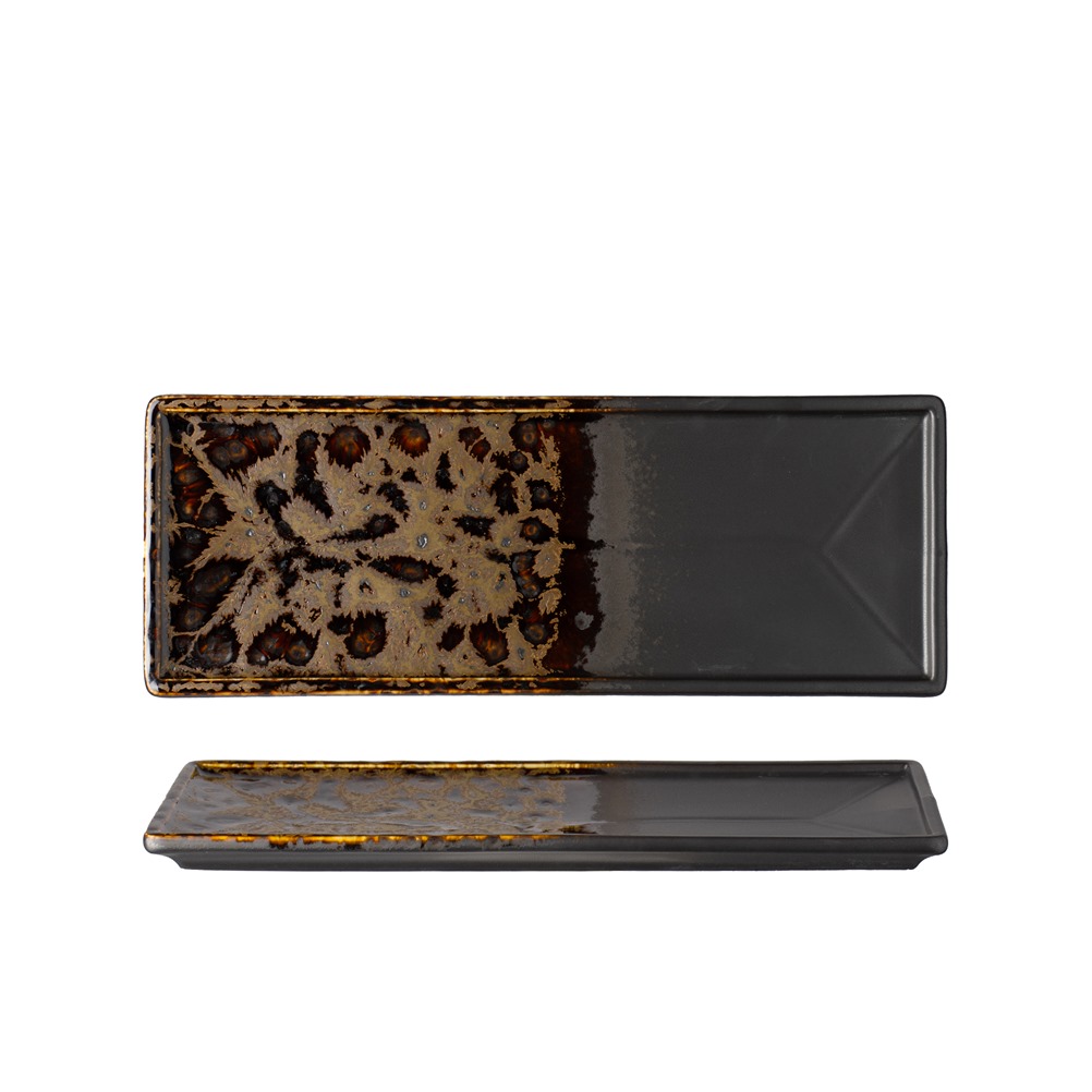Πιατέλα ορθογώνια πορσελάνης, 30.5x11.6xΥ1.8cm, σειρά HIKARI, Reactive Καφέ, PREGO