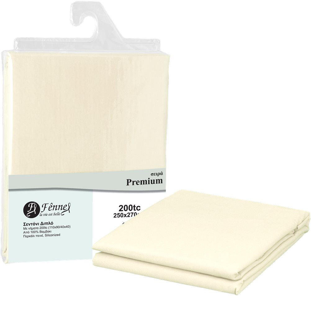 Σεντόνι διπλό 250x270 (4+1), 100% βαμβ. περκάλι πενιέ, siliconized, 200 κλωστές, εκρού