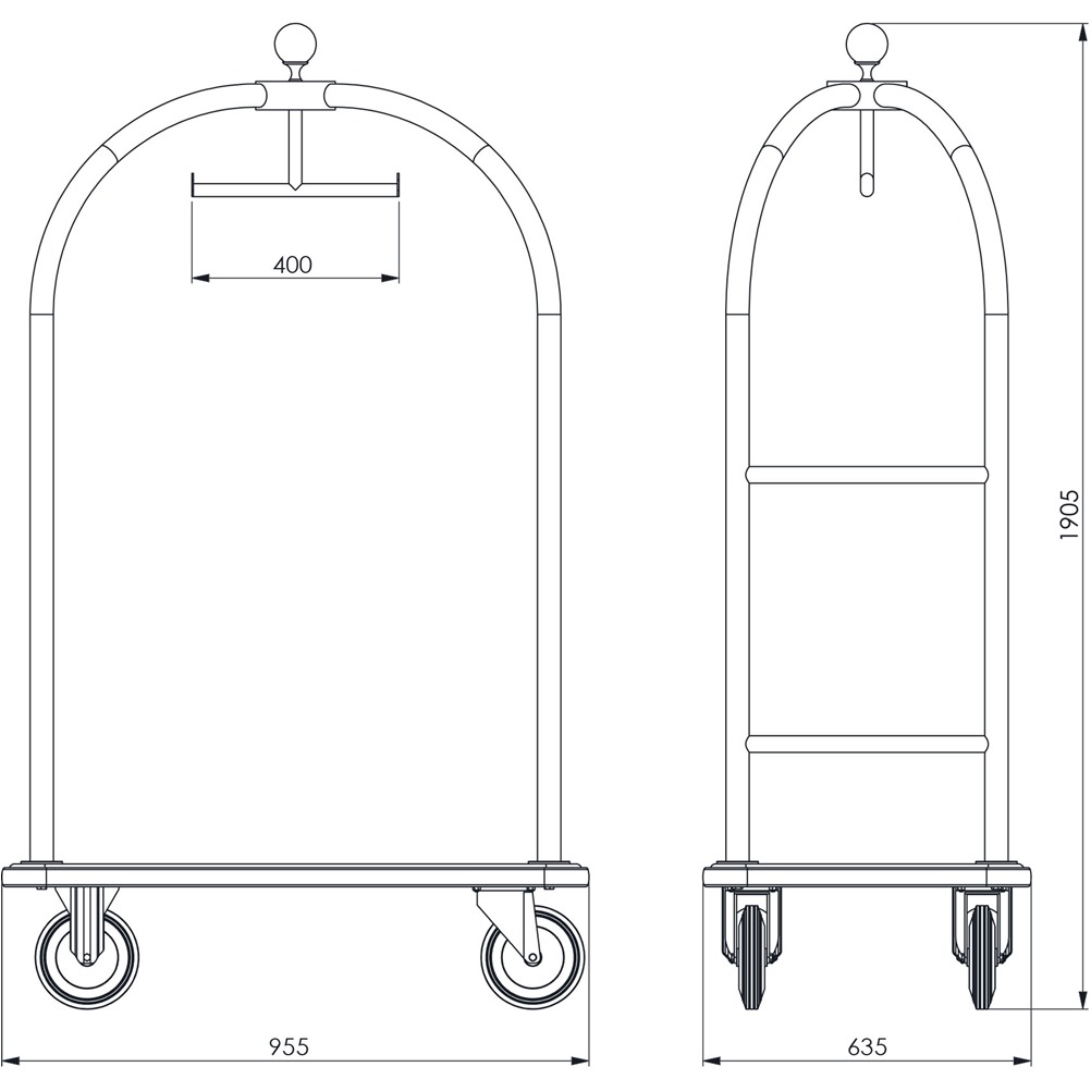 Τρόλεϊ Μεταφοράς Βαλιτσών, με Ρόδες από Καουτσούκ, Inox BRUSHED, με Γκρι Μοκέτα, 95.5x63.5x190.5cm, Evinoks