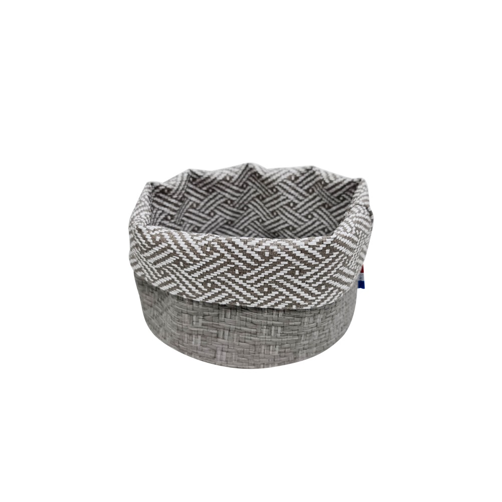 Ψωμιέρα Στρογγυλή φ15cm, ψάθα λευκό/γκρι, από αλέκιαστη πλενόμενη δερματίνη, SONOLYS