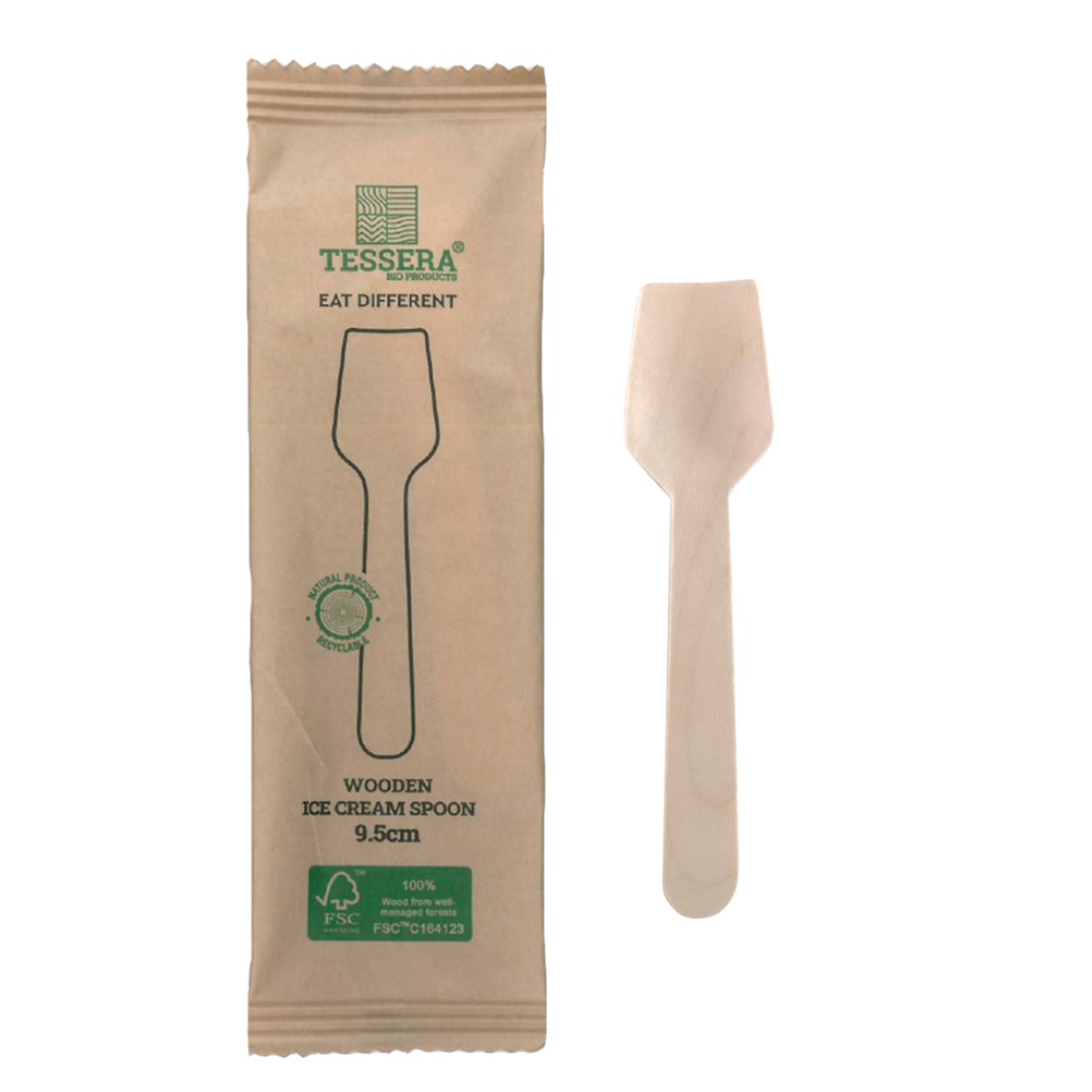 Ξύλινο Κουταλάκι παγωτού 9.5cm σε ατομική συσκευασία, κερωμένο