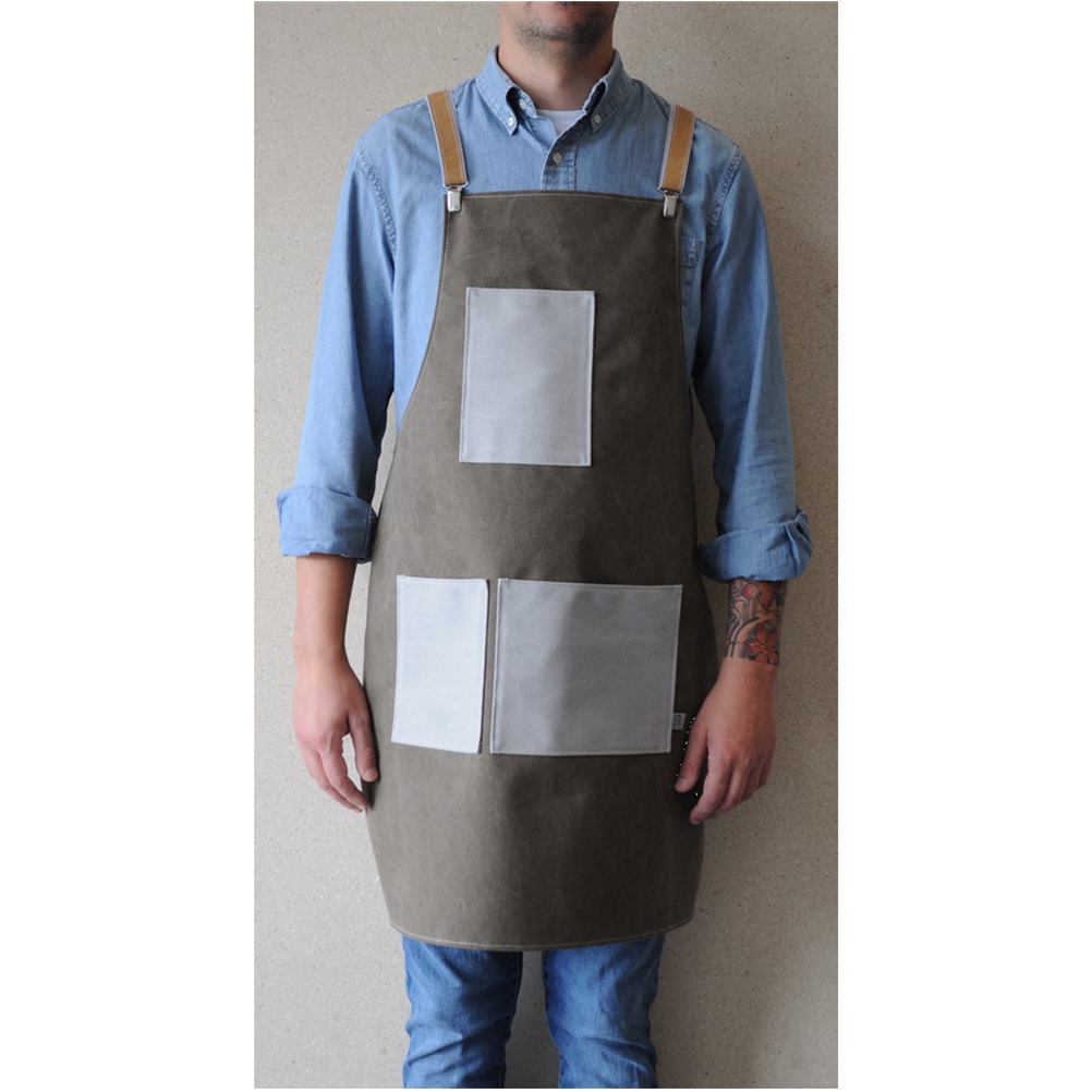 Ποδιά μπροστέλα Καφέ, 85% βαμβάκι/15% polyester, 67x69cm, με 3 τσέπες & τιράντες, Dafne Design
